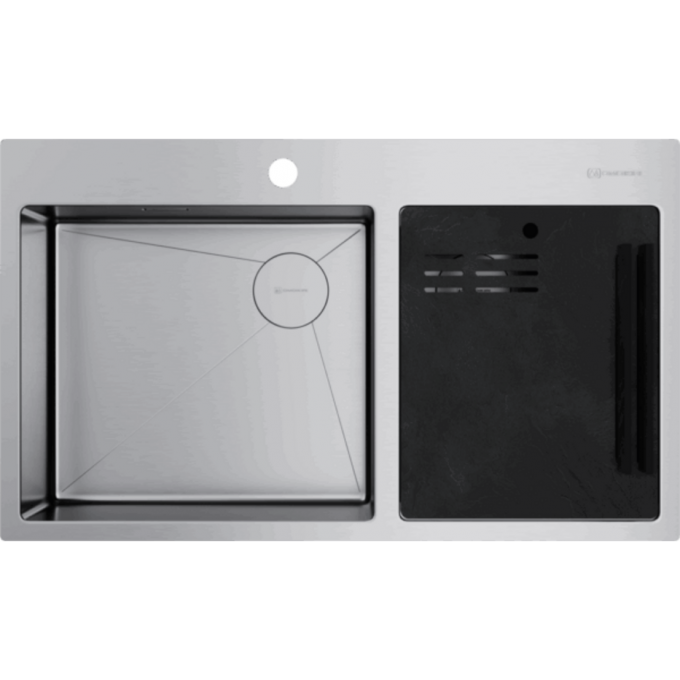 Мойка Omoikiri 86-2 SIDE со смещенным сливом и функциональной вставкой в малой чаше. Вставка подходит для организации пространства возле кухонной раковины. Она разделена на зоны, в которых размещаются ножи и разделочные доски. Вставку можно извлечь.